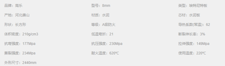 防火絕緣:不燃 A 級,火災(zāi)發(fā)生時板材不會燃燒,不會產(chǎn)生有毒煙霧;導(dǎo)電系數(shù)低,是理想的絕緣材料。